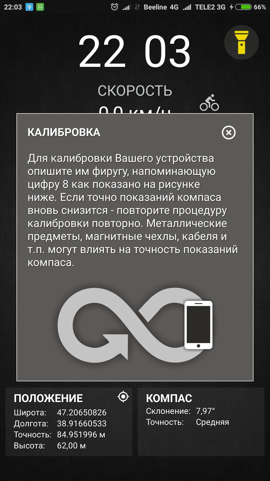 Также в компасе есть функция фонарика и больших цифровых часов для Вашего удобства.