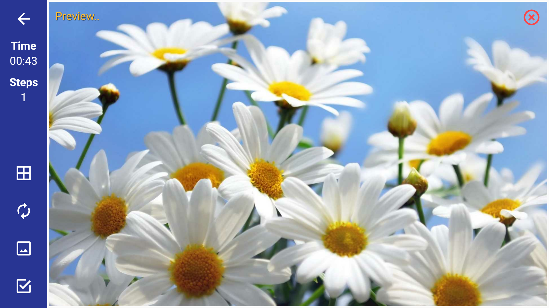 Это приложение - коллекция красивых фото пазлов цветов.Игра позволяет выбрать различный уровень сложности - от простого (3 х 3), до максимально сложного, где количество элементов ограниченно лишь размерами экрана Вашего устройства.