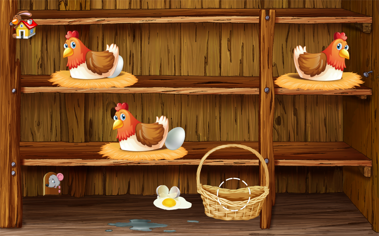 3. Курятник (с помощью корзины нужно собрать яйца, которые несут куры)