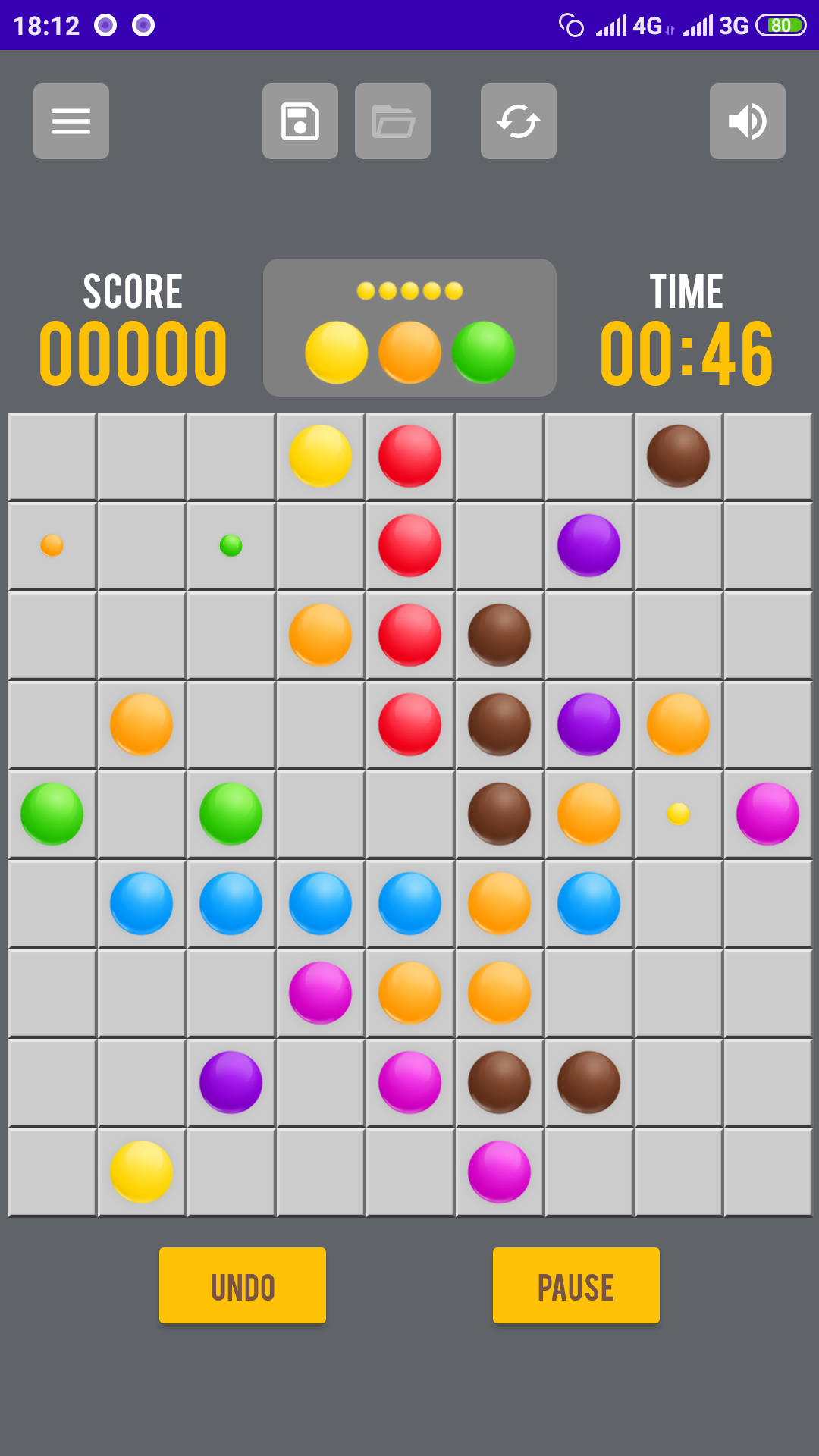 Color Lines - это занимательная и несложная игра-головоломка. Цель игры - набрать максимальное количество очков, составляя линии из шаров одного цвета по горизонтали, вертикали или диагонали. Перемещать шары можно в любую точку игрового поля, если туда существует путь.Несмотря на простоту правил, для того чтобы достичь хороших результатов потребуется много усилий и мастерства!