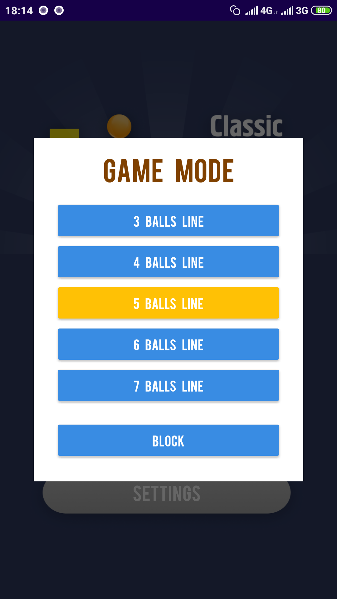 • возможность выбрать режим игры с количеством шаров в линии;