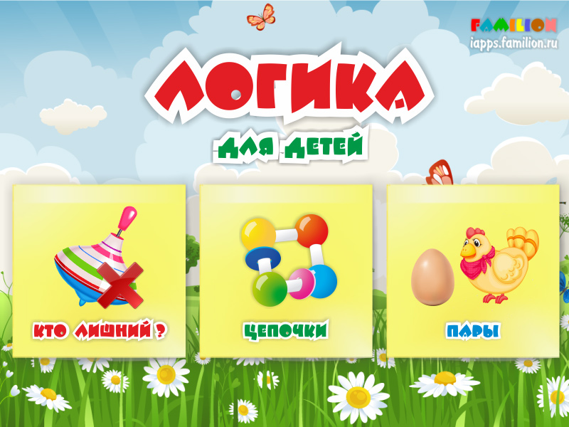 Приложение «Логика для детей» - это набор развивающих и обучающих игр для малышей, основанных на классических методиках дошкольного образования для развития логического мышления, способности к обобщению и классификации, пониманию существенных (наиболее важных) характеристик предметов.В приложение включены 3 разновидности игровых заданий: