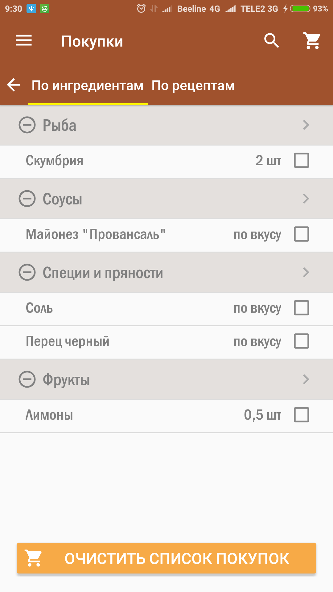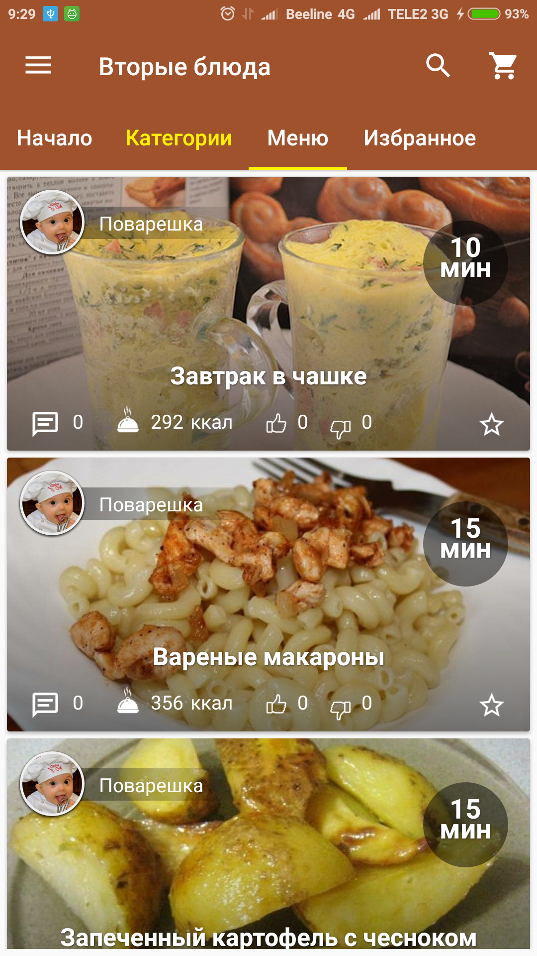 Понравившиеся рецепты Вы сможете сохранять в «Избранное». Так же Вы сможете вести свой список покупок для похода в магазин.