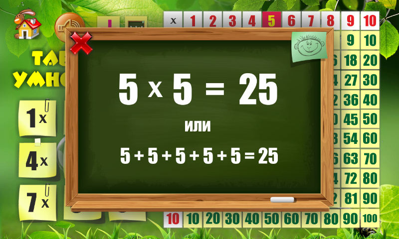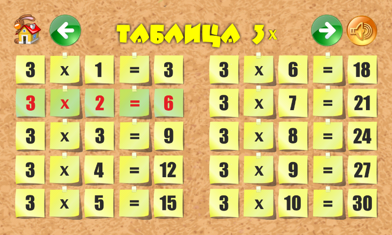 Наше приложение в игровой форме позволит Вашим малышам освоить таблицу умножения. В разных режимах ребенок сможет в интерактивной форме освоить умножение на каждую цифру в пределах 10, а красочная графика не позволит скучать будущему маленькому гению. Режим автоматического воспроизведения позволит изучать таблицу умножения без дополнительный действий.В режиме для проверки ребенок сможет закрепить полученные знания.